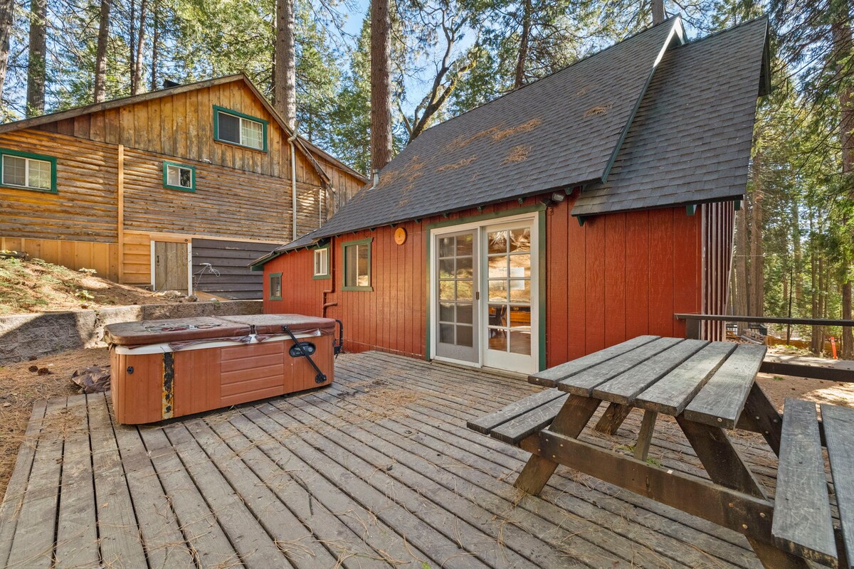 Quiet and Rustic family cabin located at the end of a cul - de - sac in quaint Mi - Wuk Village. Dapur dan kamar mandi yang baru direnovasi dengan nuansa modern abad pertengahan yang asli. Hangatkan diri di depan perapian kayu bakar, duduk di antara pepohonan dari dek bertengger kami yang tinggi. Jadikan ini sebagai basis Anda untuk hiking, memancing, dan berenang di Sierras. Di musim dingin, bermain ski di Dodge Ridge atau naik kereta luncur. Kemampuan panggilan wi - fi dan zoom yang sangat baik.