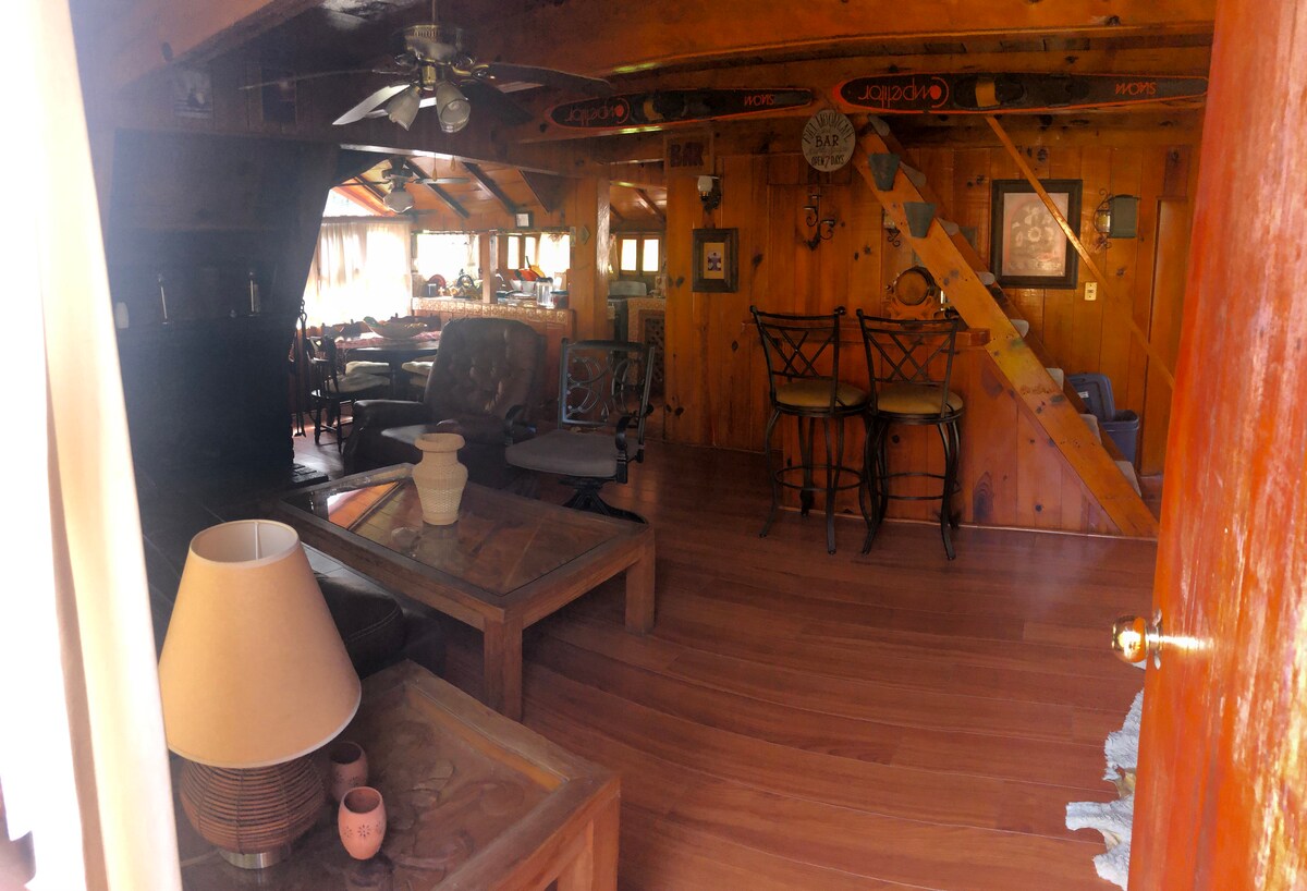 Kabin Cantik di Mazamitla 1km dari Desa di dalam Properti Pribadi dan dikelilingi oleh Hutan. Kapasitas 10 hingga 22 orang. - Memiliki 4 kamar tidur dan tutupnya. Salah satu Kamar adalah Suite Pribadi dengan pemandangan Panorama. - Dapur berfasilitas lengkap - 3 kamar mandi full dan 2 Half kamar mandi. - Ruang tamu dengan perapian dan TV Plasma dengan layanan piring. - Teras dengan Asador - Taman Besar dengan Brincolin dan Fogatero. - Tempat parkir untuk 4 mobil. Catatan: Bawalah Handuk Anda sendiri.