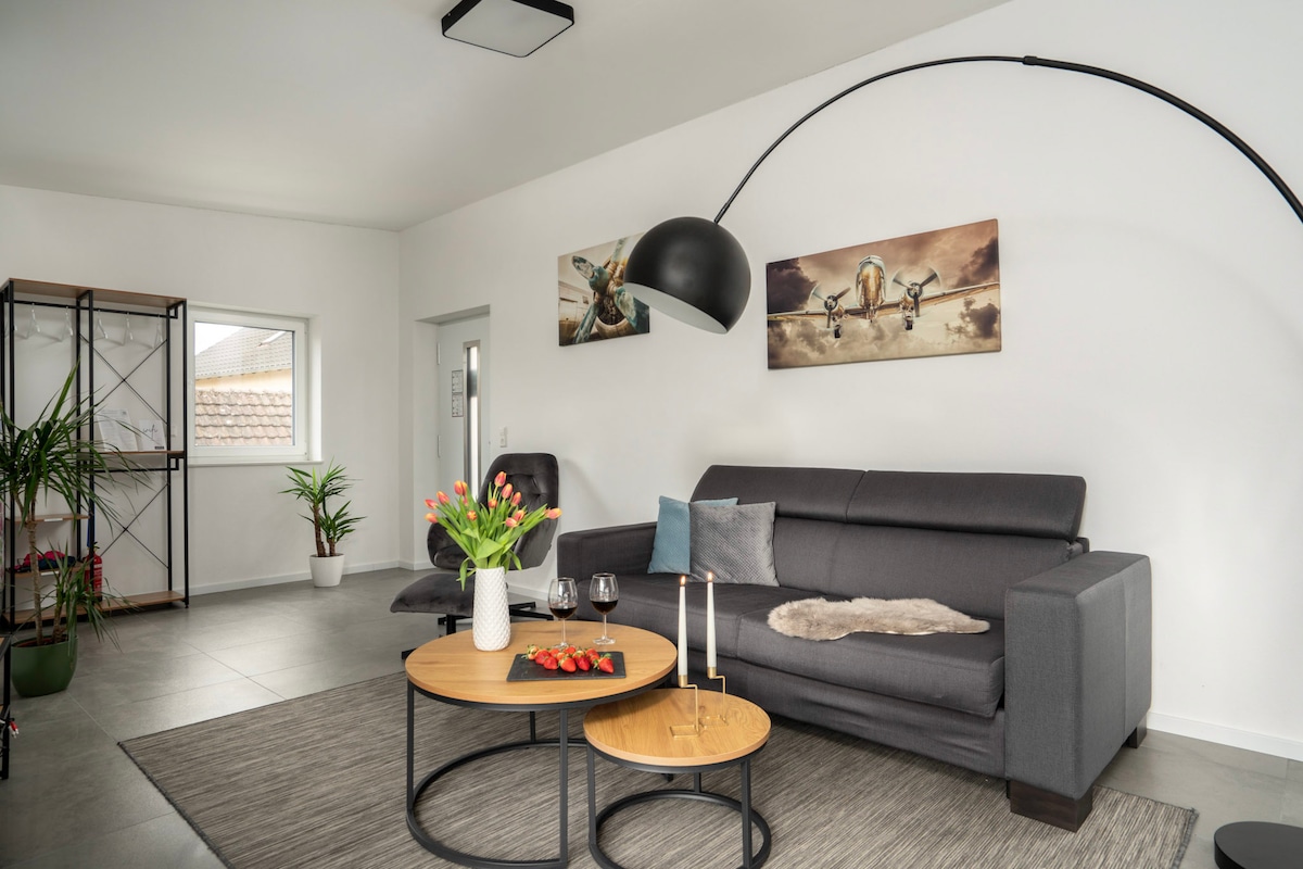Nikmati matahari di balkon Anda sendiri, atau nikmati ketenangan alam. Baik untuk bisnis maupun kesenangan, di sinilah tempatnya. Tiba di tempat parkir mobil Anda sendiri sedang menunggu tempat yang bergaya - modern apartemen berperabot lengkap. Dari Wi - Fi 100MBit/s, hingga dapur terpisah dengan kulkas besar, kamar mandi dengan pancuran dan bak mandi besar, serta toilet terpisah dan banyak lagi. Dengan berjalan kaki Anda berada dalam 10 menit di pusat Laufer atau di stasiun kereta api. Baru mulai Juni 2024: Yoga/ Gym