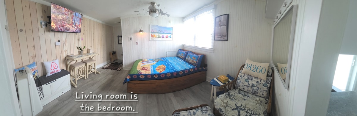 Hanya beberapa langkah dari pantai Teluk Delaware. Lihat matahari terbenam setiap malam dari dek lantai dua Anda. Dibangun pada tahun 2025, nikmati dua kamar tidur baru kami, satu kamar mandi, ruang tamu konsep terbuka/dapur/apartemen makan. Terletak 15 menit dari Cape May & Wildwood. Banyak kilang anggur dan kilang bir dalam jarak 10 mil. Kami berlokasi di "Flats," ketika air surut, genangan air tersisa untuk banyak burung dan ikan. Kami tidak bisa menerima anjing pelayan, anjing kami tidak ramah anjing. Kami bebas rokok. WiFi