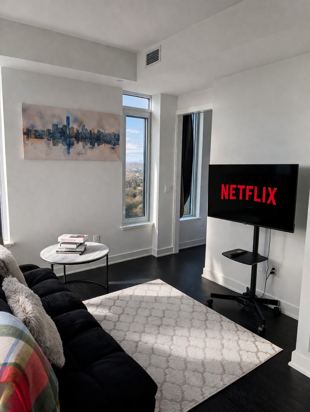 Kagumi Pemandangan Kota dari Tempat Tidur di Apartemen yang Chic ini