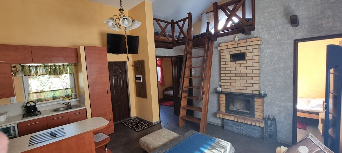 Bersantai dan bersantai di tempat yang bergaya. Interior yang nyaman dan hangat mengundang Anda untuk bersantai, memungkinkan Anda menghabiskan malam romantis di dekat perapian. Apartemen ini berlokasi ideal 30 meter dari danau dan pantai dengan dermaga. Pantai ini memiliki perapian tertutup dan area barbekyu. Pada jarak 50 meter, jalur sepeda dan jalur pejalan kaki di sekitar danau dimulai. Apartemen yang nyaman terdiri dari ruang tamu fungsional dengan ruang tamu dan dapur kecil, kamar tidur dan kamar mandi.
