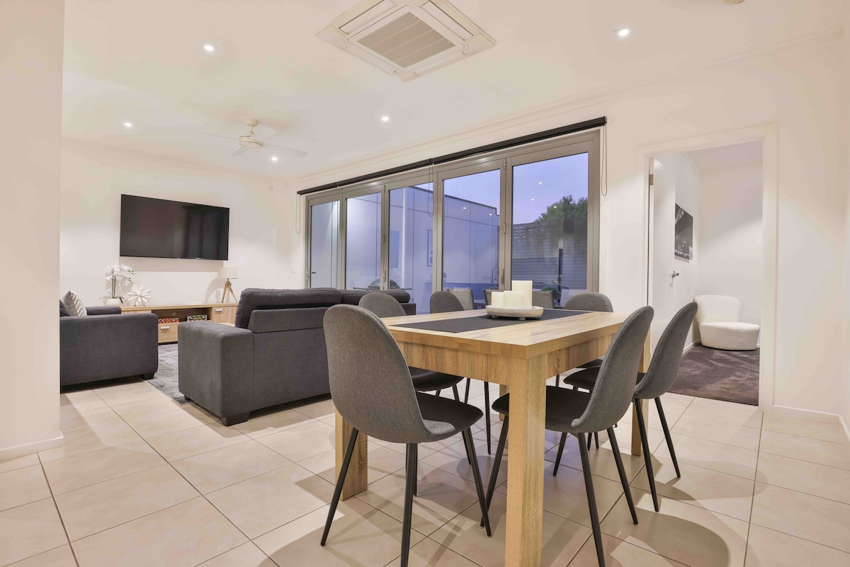 Ini adalah kesenangan kami untuk berbagi rumah kami yang terletak begitu dekat dengan pusat kota. Kami telah mengaturnya dengan kenyamanan, kemudahan, dan hiburan untuk bersenang - senang dan bersenang - senang selama kunjungan Anda. Fasilitas: AC sistem split di seluruh Mesin kopi bertumpuk Wi - Fi berkecepatan tinggi 2x smart TV Weber BBQ Terletak: 500m ke taman Riverfront 750 m ke Langtree mall/Feast Street 650m hingga 400 Gradi (Restoran Italia) 550 m ke RSL 600 m ke Bioskop 600 m ke IGA (bahan makanan) 400 m ke Kantor Polisi