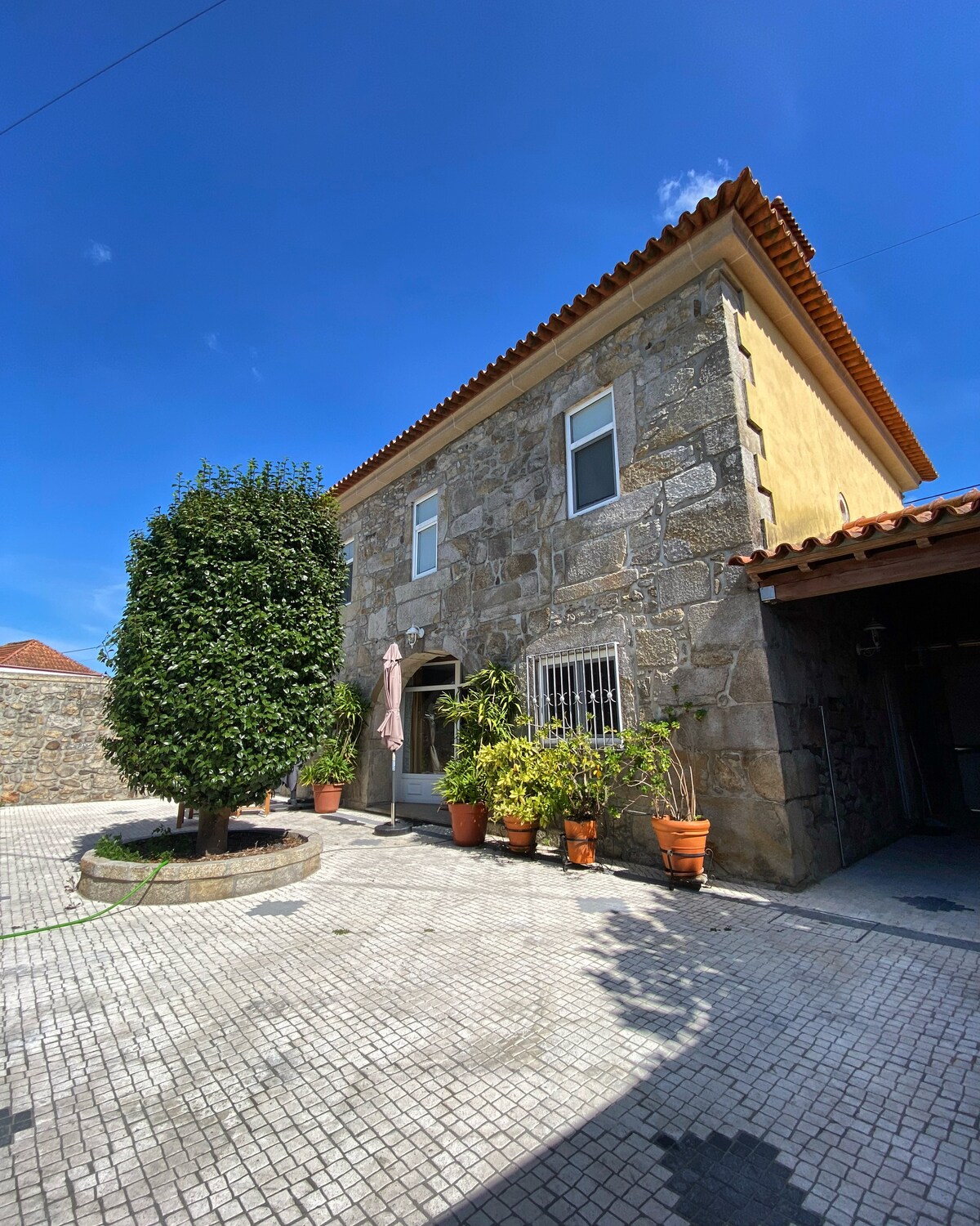 Très grande maison rustique, en pleine campagne, avec plus de 300 m2, 4 chambres spacieuses, une grande cuisine, un salon (1er étage) et un salon de fêtes (rez-de-chaussez). Autour, un très grand champs, des animaux de ferme, une vigne, un potager avec arbres de fruits. La maison est idéale pour de grands groupes d’amis ou familles(jusqu'a 9 personnnes) avec voiture. Les villes proches sont Famalicão, Barcelos, Braga, Vila do Conde et Guimarães. Repos, tranquillité et nature sont au rendez-vous.