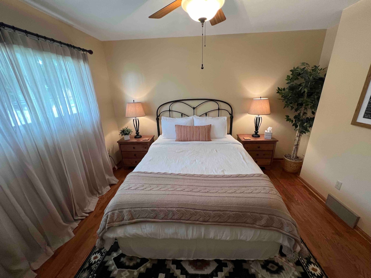 Rumah yang baru direnovasi ini, yang terletak di dekat bandara, dilengkapi dengan semua fasilitas yang biasanya Anda miliki di rumah. Tempat ini memiliki tiga ruang tamu dengan TV dan dua dengan perapian gas, tiga kamar tidur, dua kamar mandi lengkap, dan satu dapur lengkap. Rumah ini menawarkan halaman belakang pribadi yang indah dengan pemanggang dan tempat duduk luar ruangan (musiman), serta jukebox Anda sendiri di ruang tamu lantai bawah! Silakan nikmati rumah saya seolah - olah milik Anda sendiri!