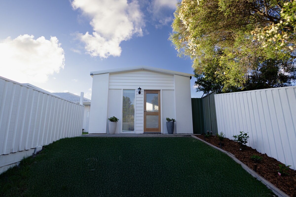 Liburan Tepi Pantai ber - AC di cul - de - sac pribadi. Suite tamu bergaya dengan pintu masuk, lounge, dan taman sendiri. Kamar tidur queen dengan kamar mandi modern. Bangunlah dengan suara laut, berjalanlah di jalur pribadi 50 m ke Pantai Bokarina yang tidak ramai. Berjalan atau bersepeda di Coastal Pathway yang teduh, dikelilingi oleh pemandangan alam dan laut. Nikmati matahari terbenam dari taman pribadi Anda. Parkir mudah di jalan. Dekat dengan Stadion, Kafe, Deli, Restoran, Pasar Petani & Rumah Sakit. Bus berjarak 3 menit berjalan kaki