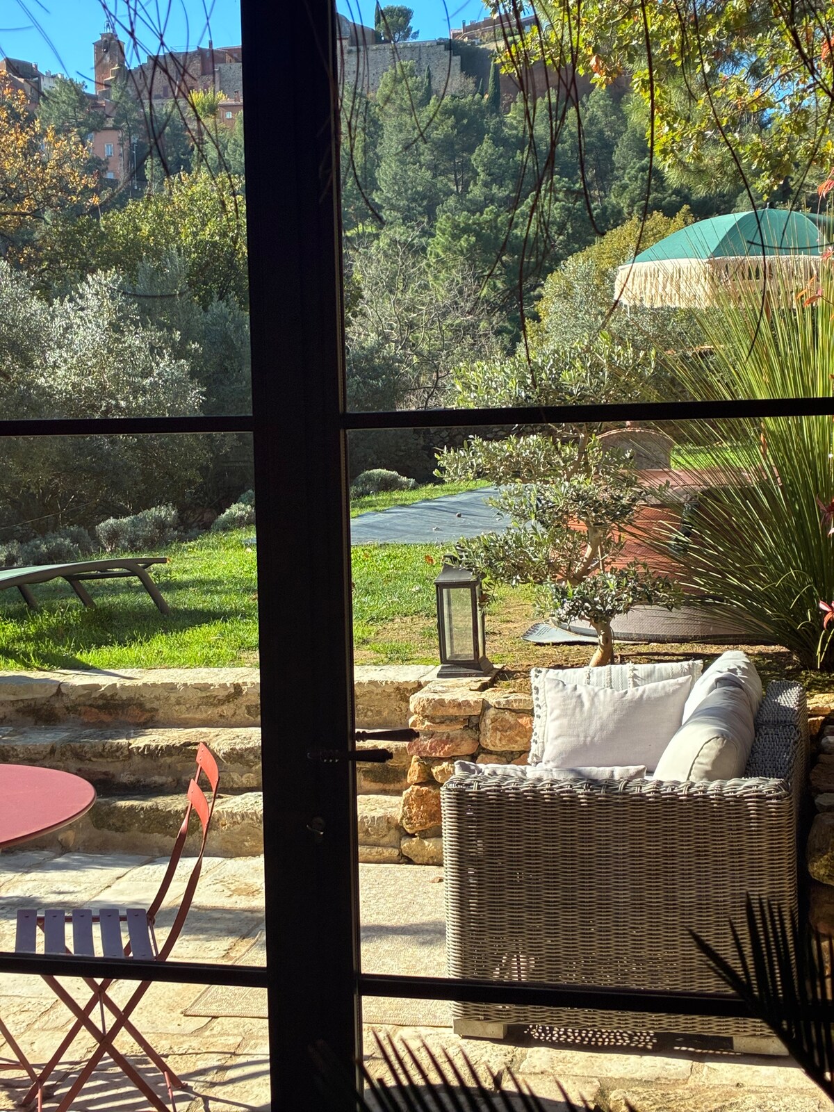 Properti ini menikmati lokasi yang luar biasa dengan pemandangan desa Roussillon. Tidak terlihat, taman besar mengelilingi rumah yang terletak di samping tebing berwarna kuning tanah. Kolam garam sepanjang 11 meter dikelilingi pohon zaitun dan pohon lavender dengan profil desa di cakrawala. Ber-AC, rumah ini dilengkapi dengan fiber, Canal+ TV, perapian di musim dingin dan plancha di musim panas. Jacuzzi dari November hingga Maret. Kolam renang mulai April hingga Oktober. Sangat cocok untuk pasangan