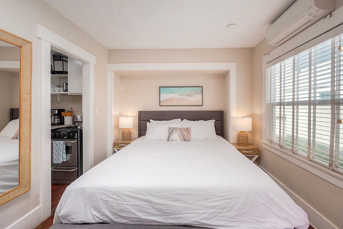 Hanya satu blok dari teluk, rumah pantai yang tenang dan nyaman dengan parkir pribadi dan teras ini sangat ideal bagi siapa saja yang menginginkan liburan pantai, namun tetap cukup dekat dengan tempat wisata, restoran, pusat perbelanjaan, dan kehidupan malam di San Diego. Kami memiliki semua fasilitas yang Anda butuhkan, unit AC baru, tempat tidur King size yang nyaman, bar kopi, teras pribadi besar dengan BBQ, 2 sepeda beach cruiser, 2 papan dayung berdiri, dan kayak juga. Bisa berjalan kaki ke restoran, taman, pantai, dan teluk. Cukup klik saja!