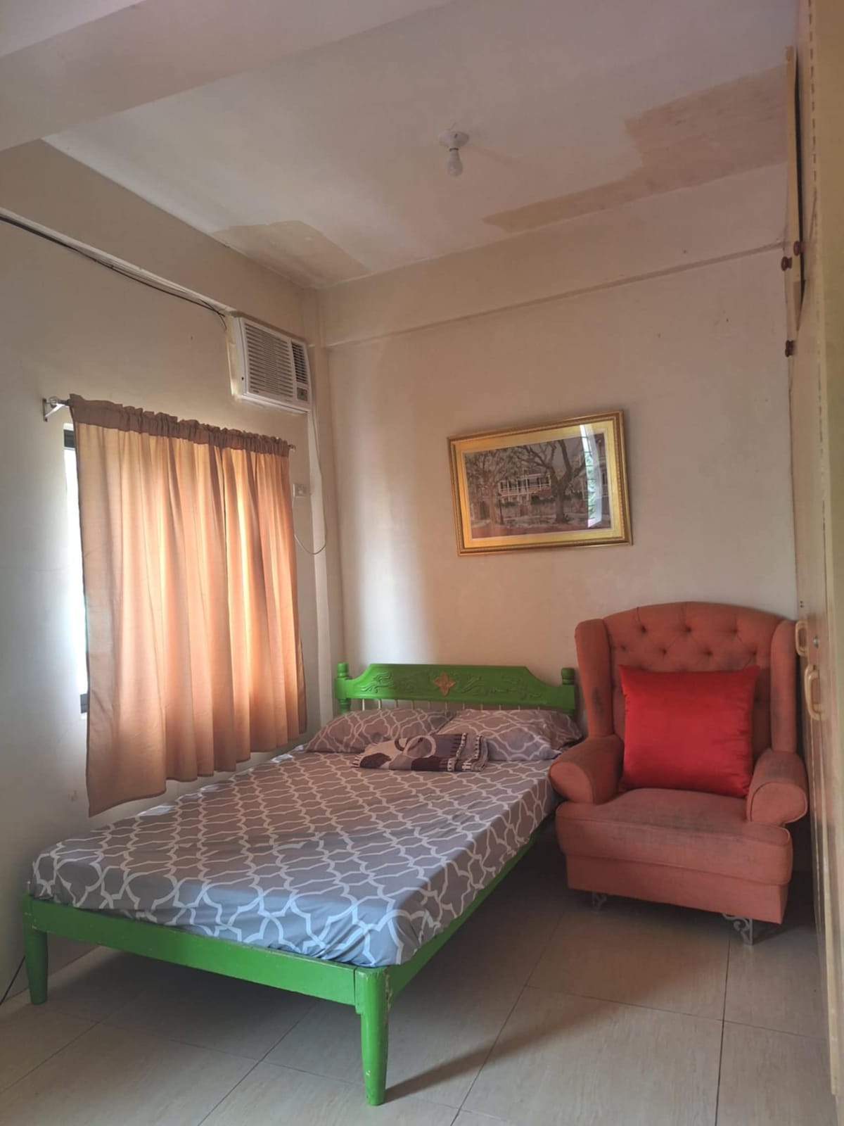 The place is located inside a family compound, short walk from the main street of the city; near convenience store/supermarket, known fast-food chains, pharmacies, banks & St. Anthony of Padua Cathedral. The well ventilated room is on the 2nd floor of a 2-storey house. The bathroom consists of a working toilet bowl with bidet spray, and a faucet with running water. No shower or heater. The room is quiet, basic, but functional for a provincial island living.
