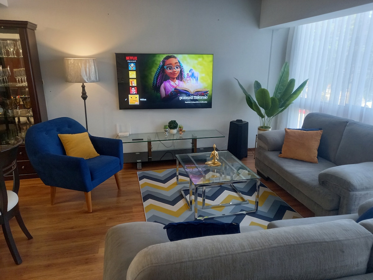 Apartemen modern dan nyaman di El Golf – Trujillo 🏡 Gedung ini berlokasi sangat baik, di depan salah satu taman terindah dan di area paling eksklusif di Trujillo: El Golf. Sangat cocok untuk perjalanan bisnis atau liburan keluarga, apartemen ini menawarkan keseimbangan ideal antara kenyamanan, gaya, dan lokasi. Parkir 🚗 gratis di jalan. Akses mudah dan area yang aman untuk berjalan kaki atau berkendara.