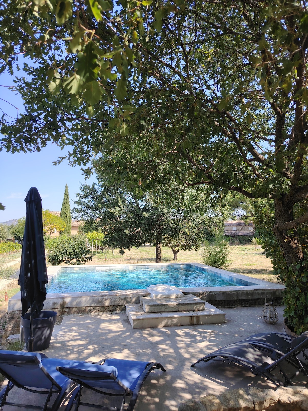 Pondok pribadi kecil dengan kolam renang 3 m X 7 m untuk berbagi juga dengan para tamu bed and breakfast, sangat terintegrasi dengan vegetasi. Di pusat Provence dengan berjalan kaki Mont Ventoux. Anda akan berada jauh dari Bastide utama Eric dan Thierry di properti yang sama di taman teduh yang tenang dan menawan. (Pintu masuk independen)