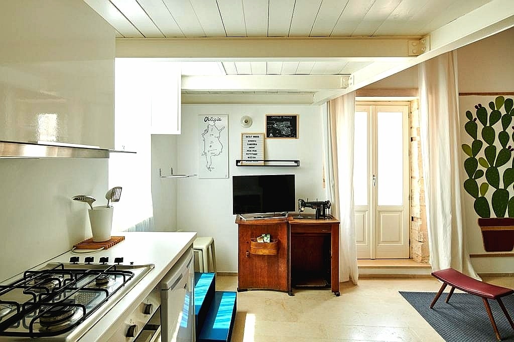 Apartemen ini berlokasi di " Graziella " distrik tertua Ortigia di lantai dua bangunan independen yang baru saja direnovasi. Apartemen ini memiliki luas 55 meter persegi, yang membentang di satu lantai kecuali loteng loteng yang memiliki tempat tidur ganda yang nyaman. Ada teras pribadi. Apartemen ini nyaman ditinggali untuk dua hingga enam orang, terdiri dari kamar tidur ganda, kamar mandi dengan pancuran dan ruang keluarga yang luas di mana Anda akan menemukan tempat tidur sofa dan loteng loteng.