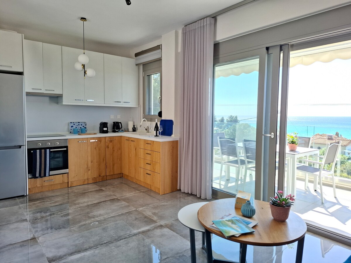Apartemen ini didekorasi dengan elemen bergaya dan modern tanpa kehilangan karakter tradisionalnya. Menjadi ideal untuk keluarga dan pasangan, tempat ini menyediakan tempat parkir, WIFI, dan pemandangan laut langsung. Hanya berjarak 15 meter dari pantai berpasir! Dekat dengan supermarket dan restoran dan hanya berjarak 60 menit berkendara dari bandara Thessaloniki (skg). Jika Anda ingin menjelajahi pantai Chalkidiki yang indah atau hanya mencari waktu untuk bersantai di tepi laut, maka di sinilah tempatnya!