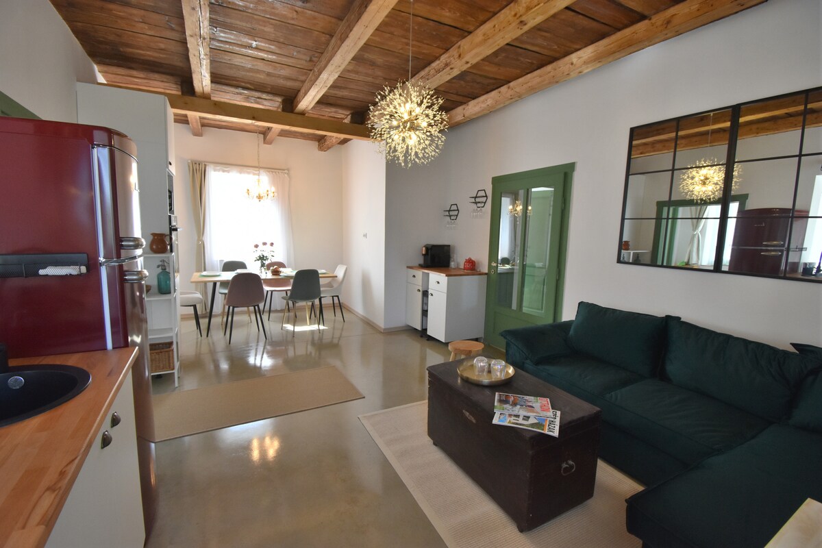 Spacious, newly renovated house in the center of Moldovenesti village (230 Main Street), surrounded by nature, with a large yard and plenty of space for relaxation. The renovation was done according to a designer project, preserving the original elements (wooden ceiling, hand-carved doors) and adding all the modern elements that ensure full comfort (underfloor heating, bathroom with walk-in shower, wi-fi, TV, washing machine, dishwasher, beans-to-cup coffee machine)