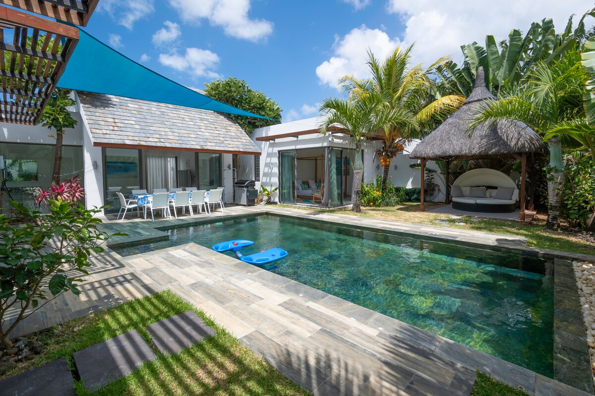 Ayo nikmati sarang Mauritius kecil kami, vila terinspirasi Art Deco yang dirancang oleh kami untuk pasangan dan individu yang mencari ketenangan. Vila ini berlokasi di lingkungan yang tenang dan penuh dengan melodi kicauan burung, hanya beberapa menit berkendara dari pantai Trou - aux - Biches (terpilih sebagai salah satu dari 3 pantai terindah terbaik di Mauritius pada tahun 2022) dan semua hal penting untuk masa inap yang luar biasa (supermarket, restoran lokal, apotek...).