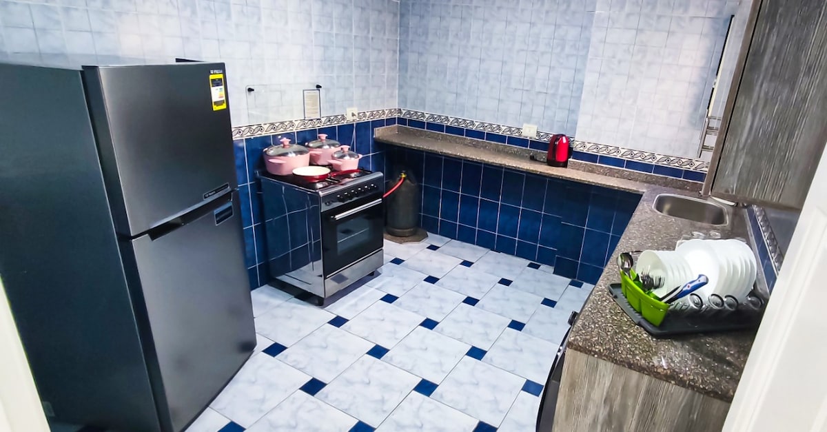 Apartemen berperabot untuk disewakan, 3 kamar tidur dan resepsionis 4 orang Perabotan baru dan canggih, bangunan khas dengan 2 lift, kamera pengawasan, keamanan, dan penjaga yang cocok untuk rombongan besar