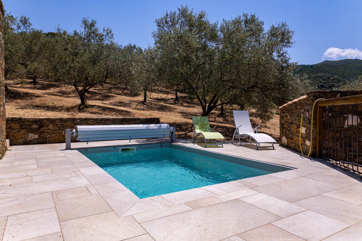 Demeure en pierre entre mer, montagne et piscine.