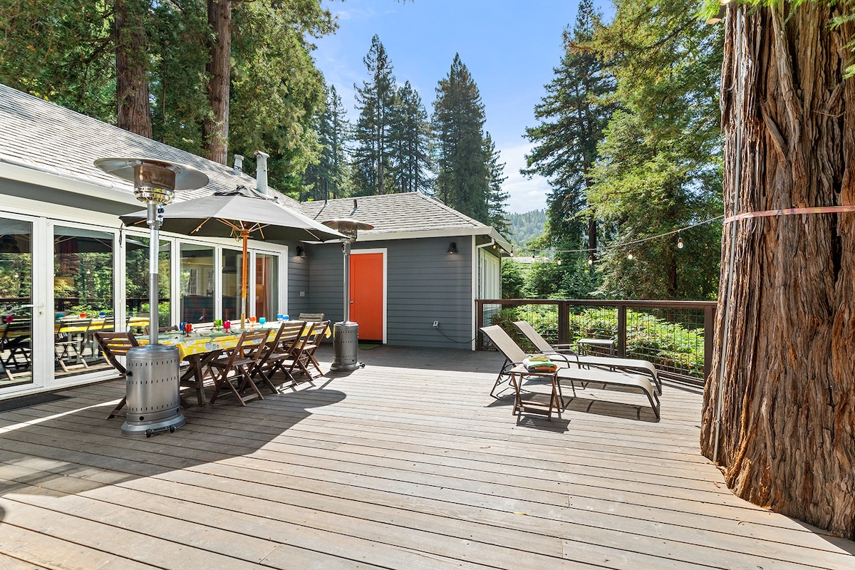 Relax + recharge at the Russian River. Rio Haus is a beautiful luxe home beneath the redwoods. Soak under the stars in a hottub or BBQ on the deck in the private yard! Nordic touches make you feel the epitome of contentment by simple comforts - being wrapped in a blanket | good conversations | leather couches | fireplace | plush bedding Spread out btwn the home & separate cottage. Comfort meets ease with internet, Samsung frame smart TV, Sonos speakers, & Nest enabled heat & AC. TOT4353N