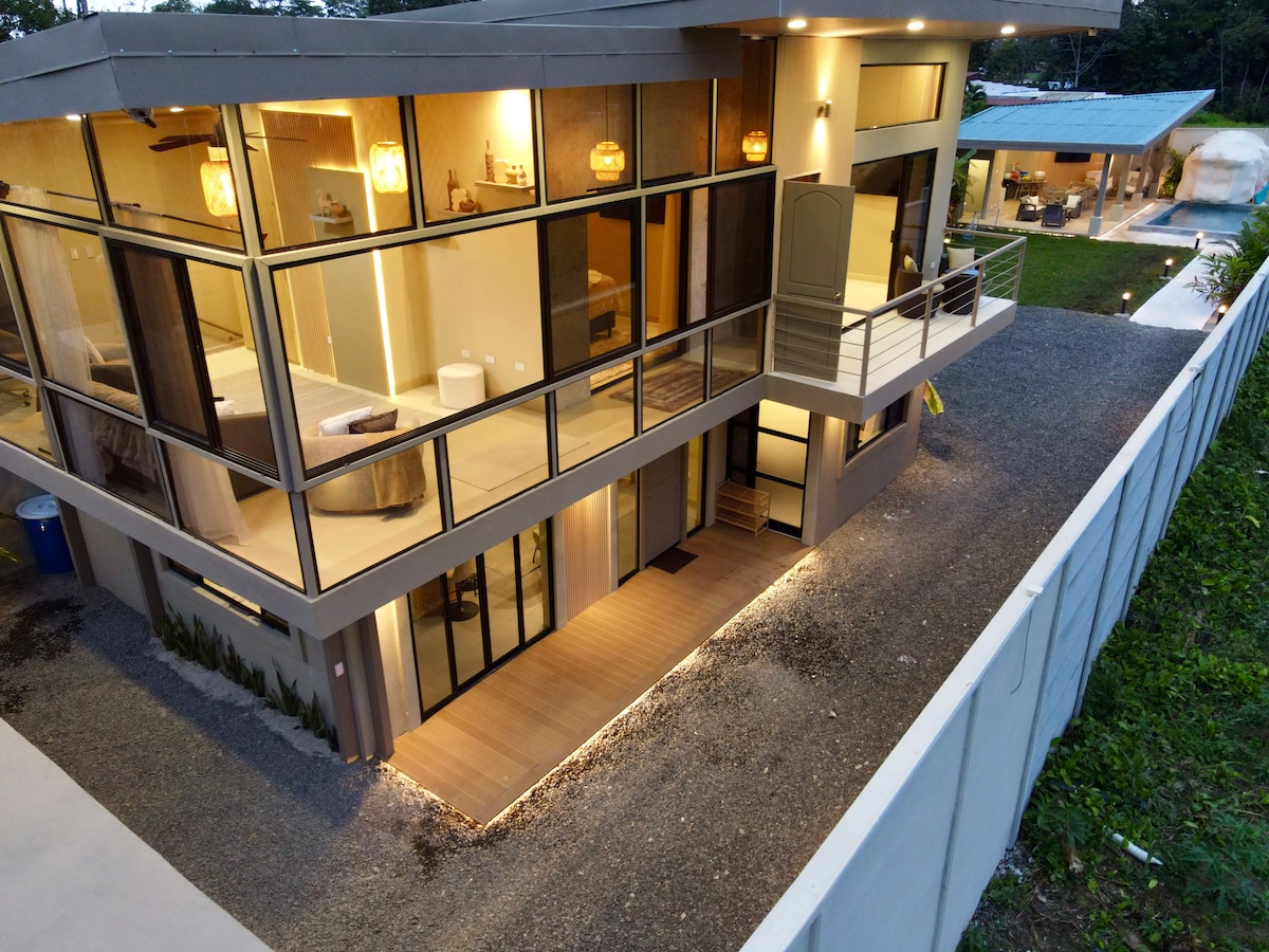 Bangun di vila A-frame yang mencolok yang menggantung di atas dasar hutan, tempat desain kontemporer bertemu ketenangan pegunungan. Terletak di kanopi Santa Elena yang subur di Monteverde, rumah yang dirancang arsitek di Sukha Monteverde ini menawarkan kombinasi sempurna antara kenyamanan, gaya, dan kedekatan dengan atraksi hutan awan terbaik di Kosta Rika Jika Anda mencari petualangan, romansa, atau ketenangan, kabin A-frame yang elegan ini memberikan pengalaman yang tak terlupakan di salah satu area paling beragam hayati di Bumi