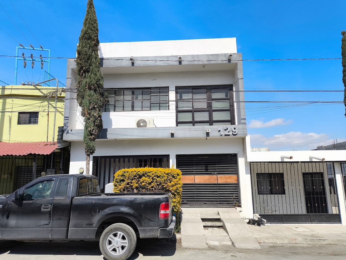 Relájate con toda la familia en este amplio y tranquilo lugar. Cuenta con 3 habitaciones con su baño privado en cada una de ellas. La casa goza de una ubicación privilegiada, cercana a diferentes centros de espectáculos de la ciudad como: Estadio BBVA, Bosque mágico, Parque Fundidora, Paseo Santa Lucía, Arena Monterrey, Domo Care, Auditorio City Banamex, entre otros.