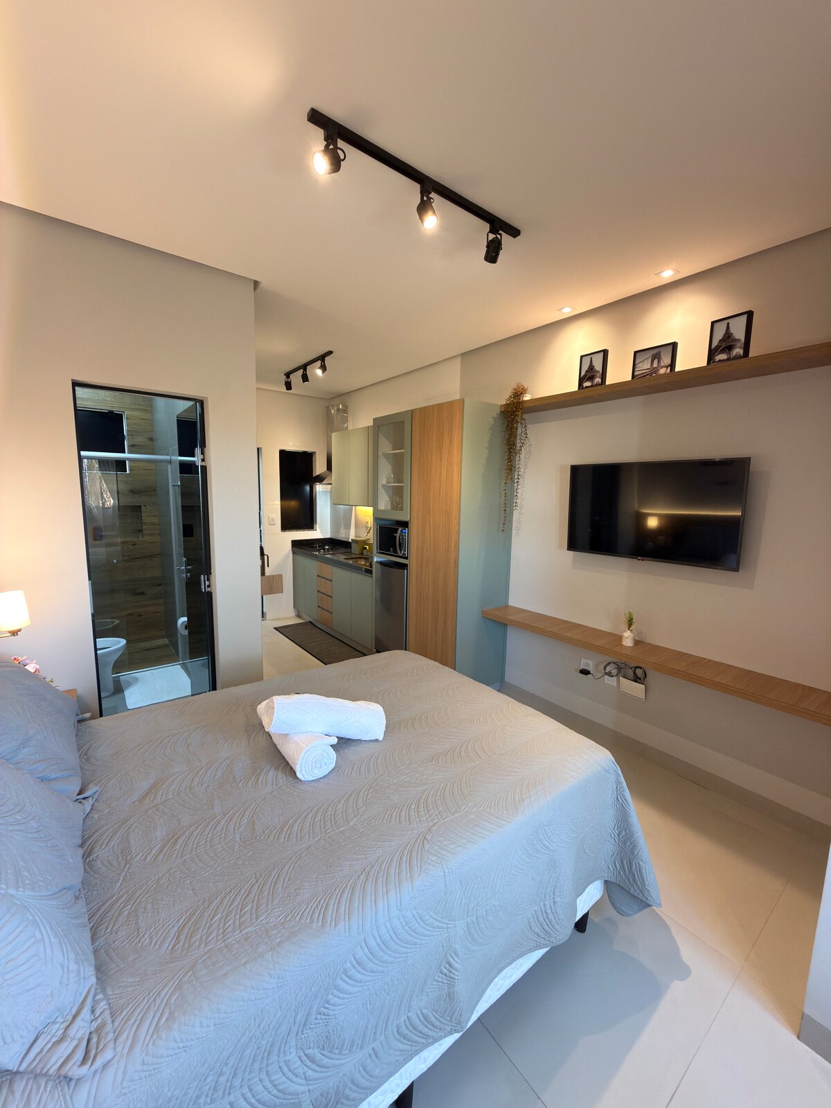 Apartemen yang indah dan nyaman untuk Anda menginap di dekat pusat kota! Semuanya disiapkan untuk Anda dengan kasih sayang yang luar biasa, dengan segala sesuatu yang baru, sehingga Anda bisa menginap selama yang Anda butuhkan. Akomodasi untuk hingga 04 orang, dengan 01 tempat tidur double, dan sofa bed untuk hingga 02 orang. Semua infrastruktur dengan AC, internet Wi - Fi, smart TV, kulkas, meja, kompor, panci, airfryer, peralatan makan, gelas, filter air, seprai tempat tidur dan kamar mandi, pengering,dll.