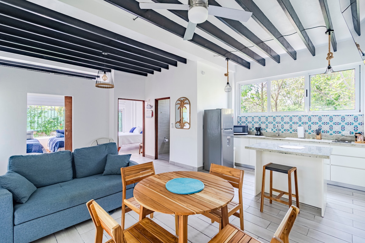 Selamat Datang di Airbnb kami yang menakjubkan! Casita kami menawarkan pemandangan laut yang tak tertandingi dari Mal Pais ke Nosara. Nikmati tempat tidur berukuran king, ruang tamu yang nyaman, dapur lengkap, kamar mandi yang luas, dan ruang tamu luar ruangan dengan pemandangan epik. Desain bergaya dan detail sempurna memastikan liburan impian. Nikmati cahaya pagi, pemandangan matahari terbenam setiap malam, atau melihat bintang di surga kecil kami. Nikmati kemegahan pemandangan dan jalani pura vida! Kami hanya berkendara 4x4 15 menit ke kota. Ayo!