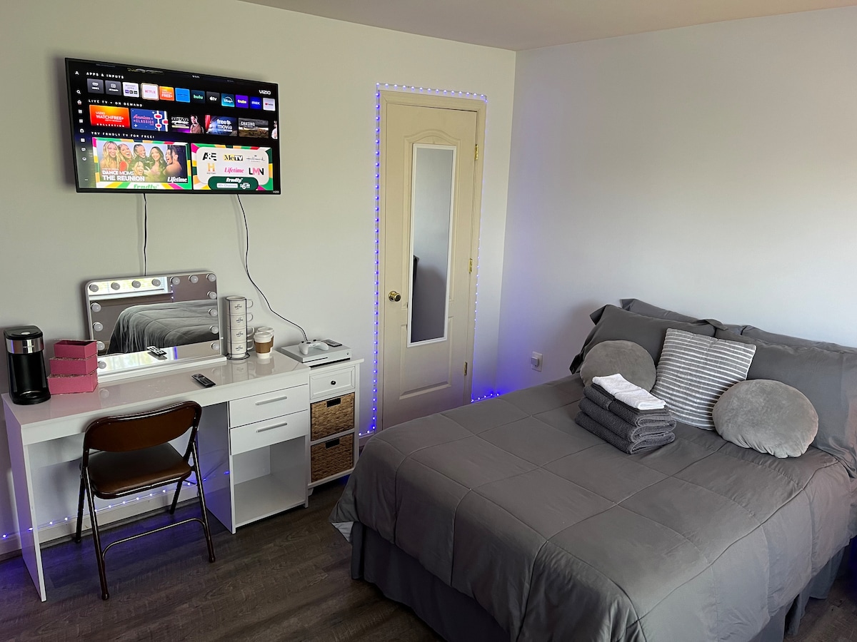 Selamat datang di penginapan bersih! Nikmati ruang pribadi yang nyaman dengan dapur lengkap dan kamar mandi bersih dengan pancuran, semuanya untuk penggunaan eksklusif Anda. Anda hanya berbagi satu dinding dengan rumah utama, menawarkan kenyamanan dan privasi. Rumah sudut ini memungkinkan parkir yang mudah dan keluar masuk yang lancar, di lingkungan yang damai dengan banyak restoran, taman, dan stasiun metro/kereta terdekat. Catatan: Jacuzzi yang ditampilkan di foto hanya shower dan bukan jacuzzi yang berfungsi.