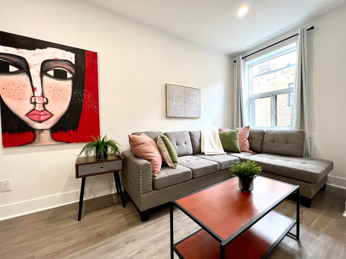 This newly renovated, modern, bright and quiet 2-bedroom apartment is located on the 4th floor of a 4-storey elevator building. The unit comfortably sleeps 6 with four separate sleeping options: a king bed, a queen bed, and two high-quality twin floor mattresses. Perfect for families or friends looking to relax after exploring the city. You're a short walk from key Montreal attractions, local amenities, and the Snowdon metro for easy access to all Montreal has to offer.