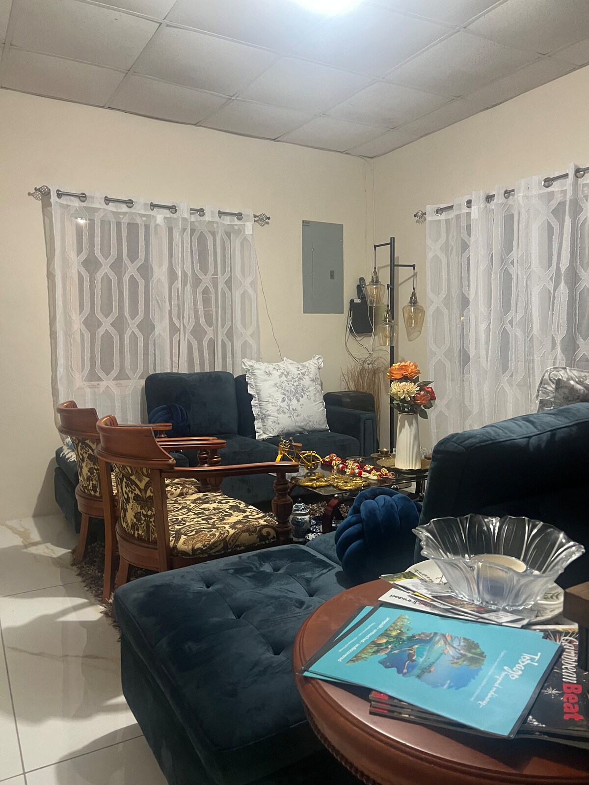 Bersantai di oasis Gaya dan Kenyamanan di ruang yang berlokasi di pusat kota ini. Hanya 7 menit dari bandara, pusat perbelanjaan Trincity dan area perbelanjaan lainnya. Sangat cocok untuk perjalanan bisnis dan liburan pasangan/teman. Beristirahatlah di Kamar tidur utama Boho Modern kami, dengan Designer Ensuite Bath kelas atas, atau tuangkan gelas favorit Anda dari penjual anggur mini kami. Dirancang dengan dapur stainless steel lengkap untuk menyiapkan hidangan favorit Anda. Bersantai di teras nyaman kami dan panggang camilan Anda di atas perapian mungil kami.