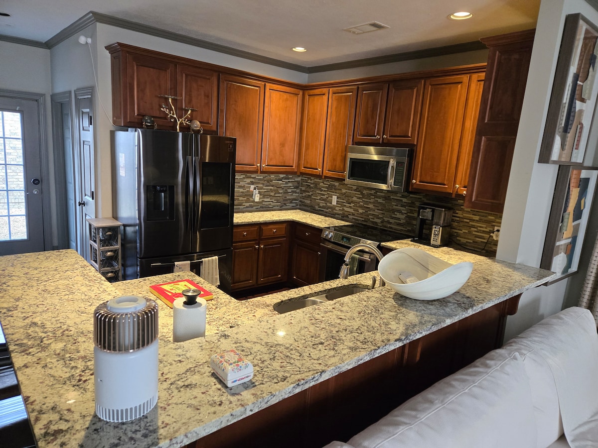 Terletak di tengah-tengah salah satu lingkungan tinggal bersejarah di Tupelo, hanya beberapa menit dari restoran lokal, taman, toko, Cadence Bank Arena, Bandara Regional Tupelo, dan tempat kelahiran Elvis Presley. Ruang kami lengkap dengan area dapur besar, tempat tidur berukuran queen, kamar mandi walk-in yang luas, bidet, serta TV di ruang tamu dan kamar tidur sehingga Anda bisa bersantai dengan nyaman. Anda juga memiliki akses pertama ke kolam renang kami selama bulan-bulan yang lebih hangat. Penginapan ini awalnya dikenal sebagai Istana Duckingham đź–¤