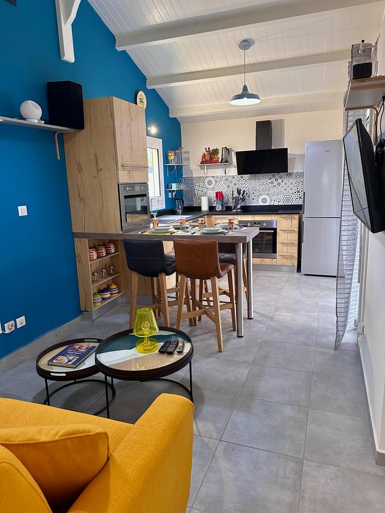 Rumah kayu 50 m2 dengan teras, maksimum 4 orang, kolam relaksasi pribadi dengan jet spa di kawasan perumahan yang tenang yang terletak di pedesaan. 5 menit dari Museum Edgar Clerc, 8 menit dari pusat perbelanjaan Baie Side, 15 menit dari Plage de l'Autre Bord & 20 menit dari Porte d'Enfer. Bersantai di akomodasi yang tenang dan elegan ini, Anda akan disambut. Dilarang merokok. Dilarang mengadakan pesta. Tidak ada dekorasi untuk ulang tahun. Kolam renang yang tidak dipanaskan. CHECK-IN MULAI PUKUL 15.00.