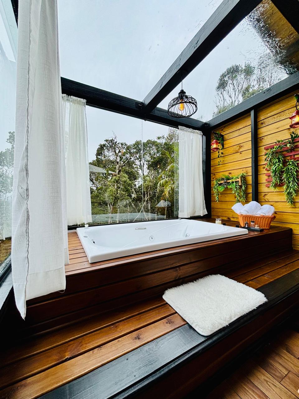 Refúgio romântico com banheira e vista montanhas