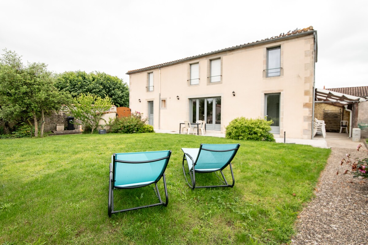 Ideal untuk masa inap yang tenang bagi keluarga atau teman, akomodasi kami terletak 15 menit dari Puy du Fou untuk menyambut Anda di pedesaan di desa 4 rumah dan 5 menit dari Sèvre Nantaise untuk berjalan - jalan atau naik kano yang menyenangkan. 1 jam berkendara, laut, rawa Poitevin dan Venesia Hijau, kebun binatang Doué la Fontaine, gua gua dan tepi Loire memungkinkan Anda menjelajahi wilayah ini. Kolam renang dalam ruangan dan berpemanas tersedia untuk Anda.