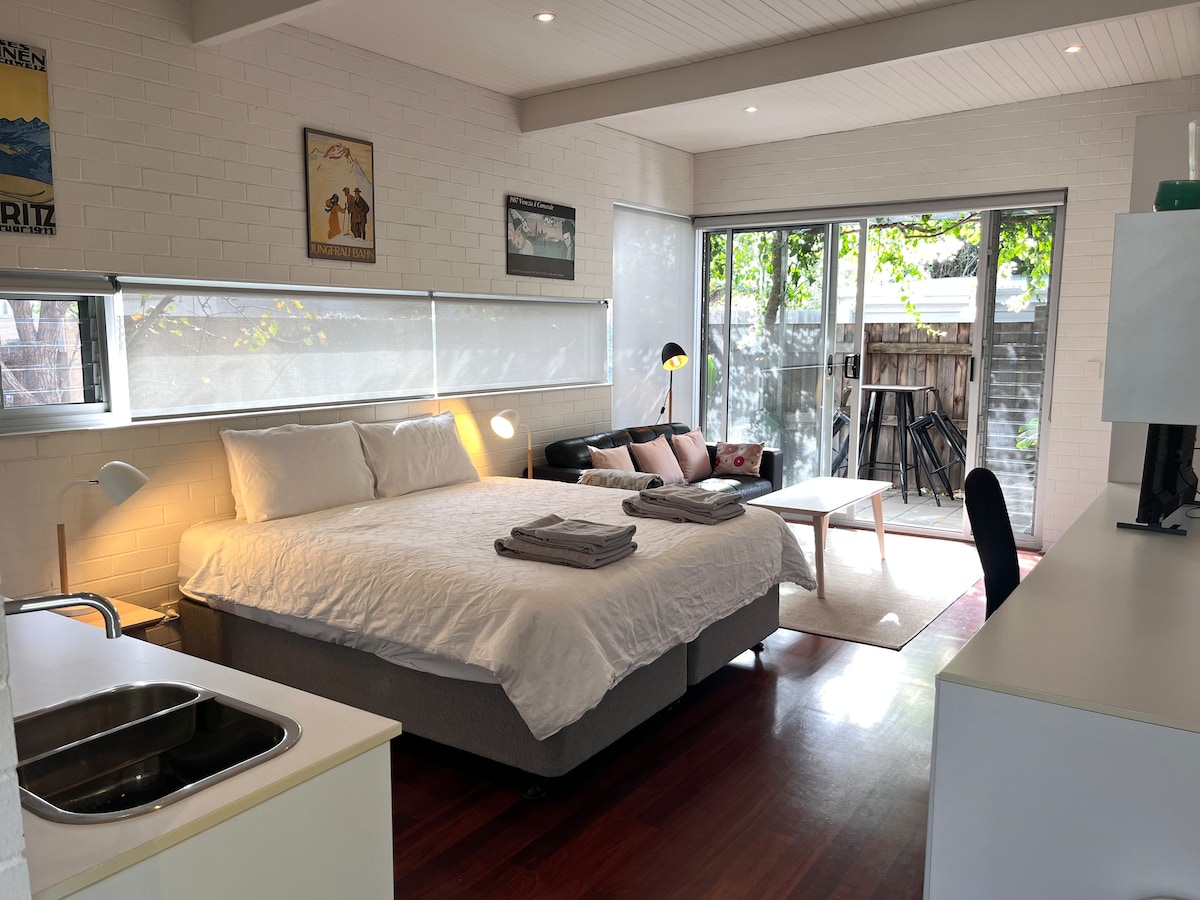 Fully self-contained, this modern and clean private accomodation is independent to a main home on a large block. Seperate access from the laneway, just minutes walk from the beach, train station and host of shops & cafes. Won't disappoint. Upto 3 guests (including any infants) permitted. Either a fold-a-bed or port-a-cot (including linen) will be provided for any additional guests (additional $15/night per additional bed)