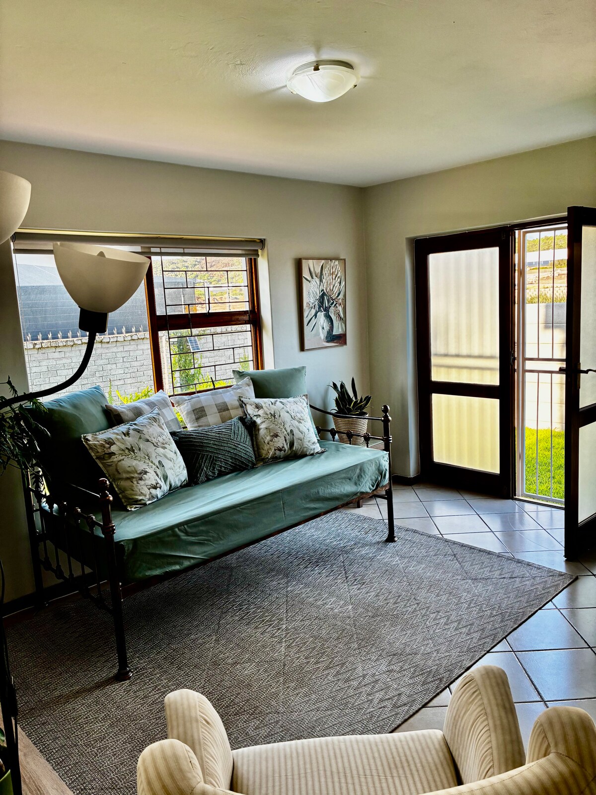 Selamat datang di apartemen lantai satu kami yang nyaman di Mossel Bay, basis sempurna untuk liburan pantai Anda. Area tamu menampilkan sofa berbentuk L yang nyaman dengan banyak bantal dan pencahayaan lembut, menciptakan suasana yang hangat dan menarik. Lukisan abstrak hitam - putih menambah sentuhan modern, dan meja dapur sangat ideal untuk kopi pagi atau minuman malam hari. Parkir tersedia di lokasi, sehingga mudah untuk menjelajahi pantai terdekat, jalur hiking, dan tempat wisata lokal. Bersantai dan nikmati masa menginap Anda!