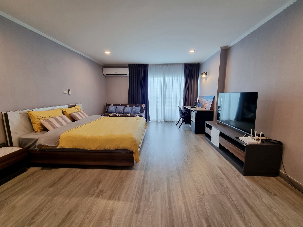 Kamar ini terletak di lantai 11 di resor pantai PMY. Anda hanya perlu berjalan kaki 100 meter ke pantai. Anda juga bisa melihat pemandangan laut dari balkon. Kamar ini dilengkapi dengan kamar studio berukuran 44 meter persegi dengan 2 tempat tidur twin dan 1 sofa bed. Kami juga menyediakan AC, TV, Kulkas, Lemari, Microwave, dan Ketel Air. Area umum kondominium saat ini sedang direnovasi (akan selesai pada 26/08). Namun, kolam renang versi baru sudah selesai dan siap Anda kunjungi!