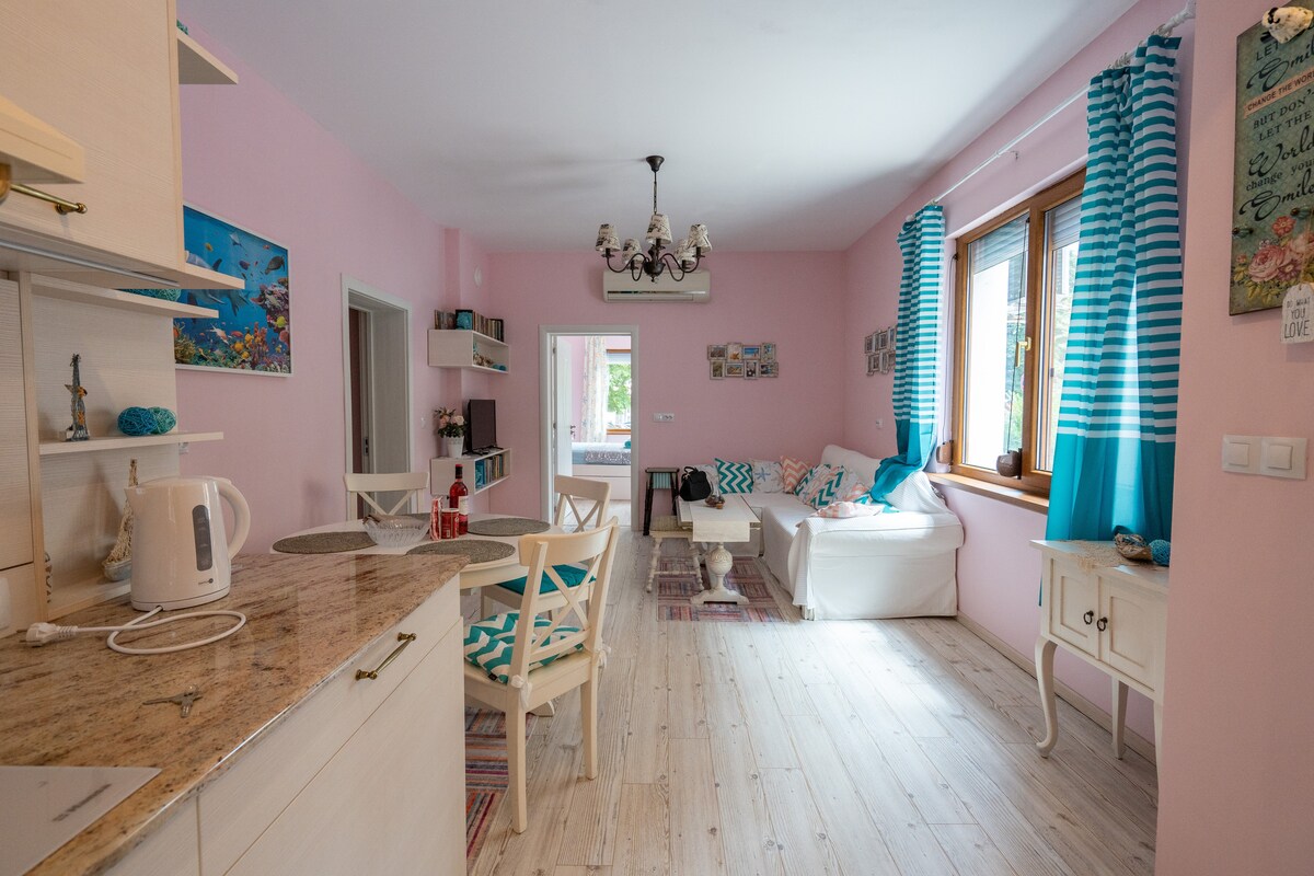 Apartemen 2bdr yang baru dibangun kembali dan berperabot lengkap dengan taman pribadi dan parkir akan menjadi tempat yang sempurna untuk keluarga, teman, dan siapa pun yang berkunjung ke Plovdiv. Terletak di pusat kota Plovdiv, hanya beberapa langkah dari area pejalan kaki, tempat ini menawarkan privasi yang damai di dalam rumah yang tenang. Nikmati berada dalam jarak berjalan kaki ke restoran dan tempat wisata terbaik. Di dalamnya,Anda akan menemukan ruang tamu yang nyaman dengan WiFi, TV kabel, HBO, Netflix, dan dapur lengkap untuk membuat masa inap Anda nyaman dan menyenangkan.