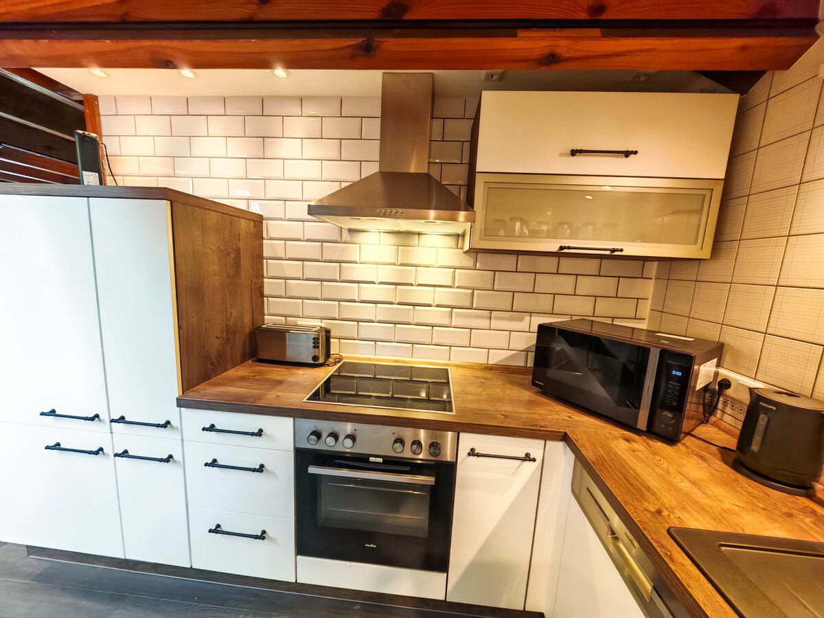 Loteng bergaya dan luas untuk 2 orang, hanya berjarak 5 menit berjalan kaki ke Kota Tua Bad Salzuflen yang menawan dengan kafe, restoran, dan toko. Terletak di townhouse berusia 100 tahun yang telah dipugar dengan penuh kasih, loteng lantai atas yang cerah ini menawarkan perpaduan unik antara karakter dan kenyamanan modern - cocok untuk masa inap yang santai untuk dua orang. Nikmati lebih banyak ruang, gaya, dan suasana daripada kamar hotel biasa, dan jelajahi semuanya dengan mudah dengan berjalan kaki. Saya menantikan kedatangan Anda sebagai tamu saya. Hormat kami, Ralf Kuehn