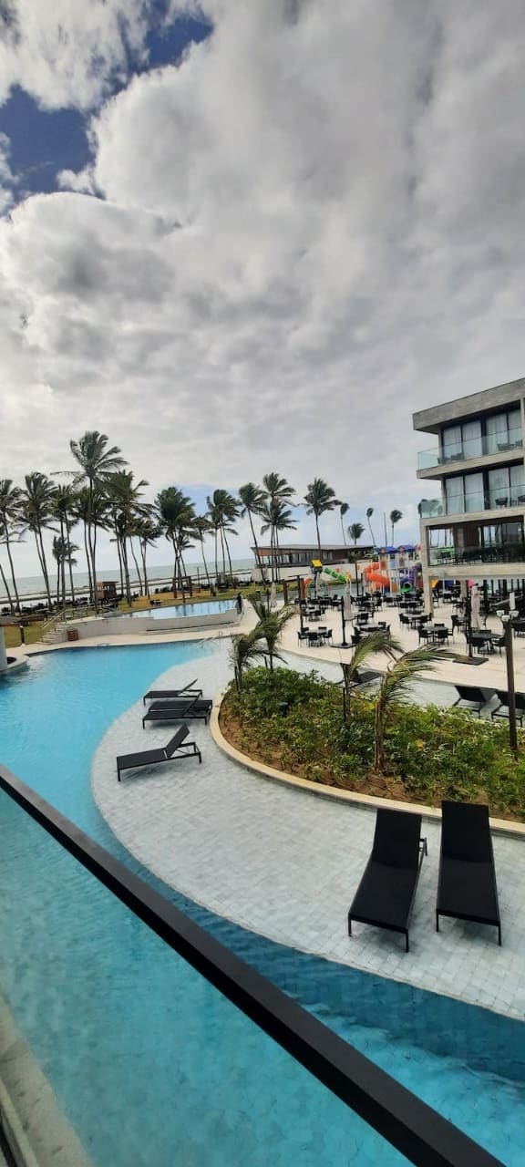 Resort pé na areia na Praia de Muro Alto, com mais de 15 piscinas e parque aquático infantil. Flat completo para até 4 pessoas, com quarto queen, sofá-cama, cozinha equipada, varanda, ar-condicionado e Wi-Fi gratuito. Ideal para famílias: * Estrutura com academia * Cinema * Boliche * Playground * Restaurantes (à parte) 1 vaga de estacionamento inclusa. Não inclui refeições. Pet friendly (consulte regras). Localização privilegiada e perfeita para relaxar.