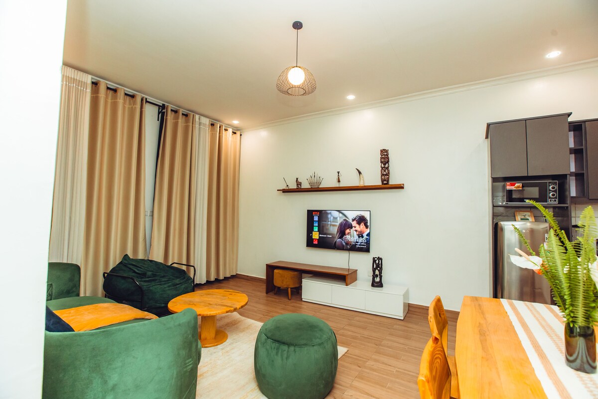 2 kamar tidur dengan sentuhan kayu, Sarapan, Netflix & Gym