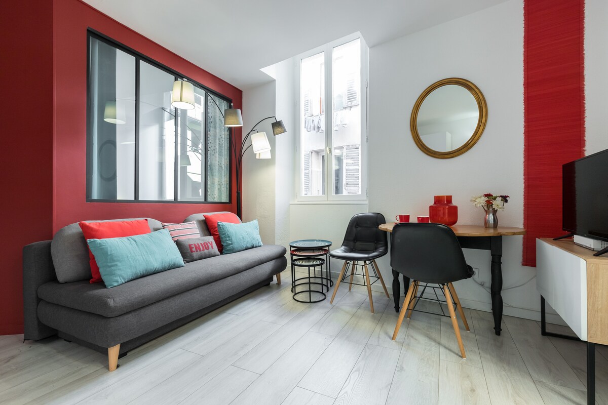 Di pusat Nice tua, distrik pejalan kaki, di jalan yang dekat dengan bar dan restoran, tenang di gedung tua, apartemen kecil yang menggemaskan dengan kamar tidur terpisah, Di lantai atas (tanpa lift), AC, dekorasi Vintage yang elegan. Perhatian tangga di bangunan khas ini, curam. Arsitektur bagasi adalah wajib, karena check - in bersifat otonom dan pengambilan kunci ada di dekat sini.