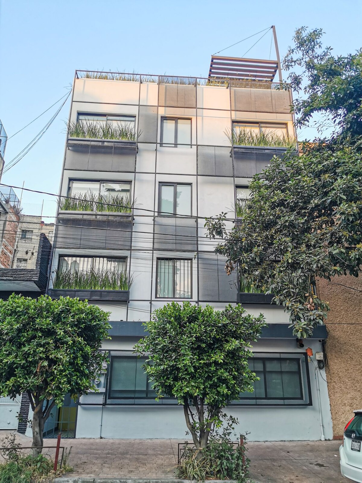 This one of a kind and cozy pent-house is located inside one of the most emblematic developments built in La Condesa neighborhood. Its architecture is a contemporary version of Art Deco. A style that defines La Condesa. It is located in a beautiful, tree-lined area. The atmosphere is very family-oriented, with young and vibrant people. The surroundings invite us to step out, walk, relax and discover new experiences.