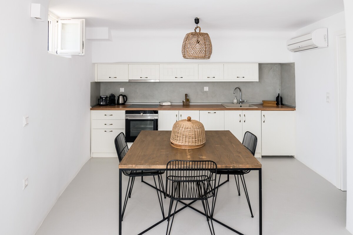 Its bagian dari kompleks Vila yang khas dan elegan - Suite dengan pemandangan panorama Delos,Naxos,Paros dan Aegean yang menakjubkan tanpa gangguan. Suite ini dapat menampung hingga 4 orang karena terdiri dari 1 Kamar Tidur dengan ukuran king dan dua sofa yang berubah menjadi 2 tempat tidur single. Memiliki 2 Kamar Mandi, dapur lengkap, AC di setiap kamar, ruang tamu yang elegan dan luas, kolam renang pribadi - jacuzzi dan teras pribadi 90m, dan parkir pribadi.
