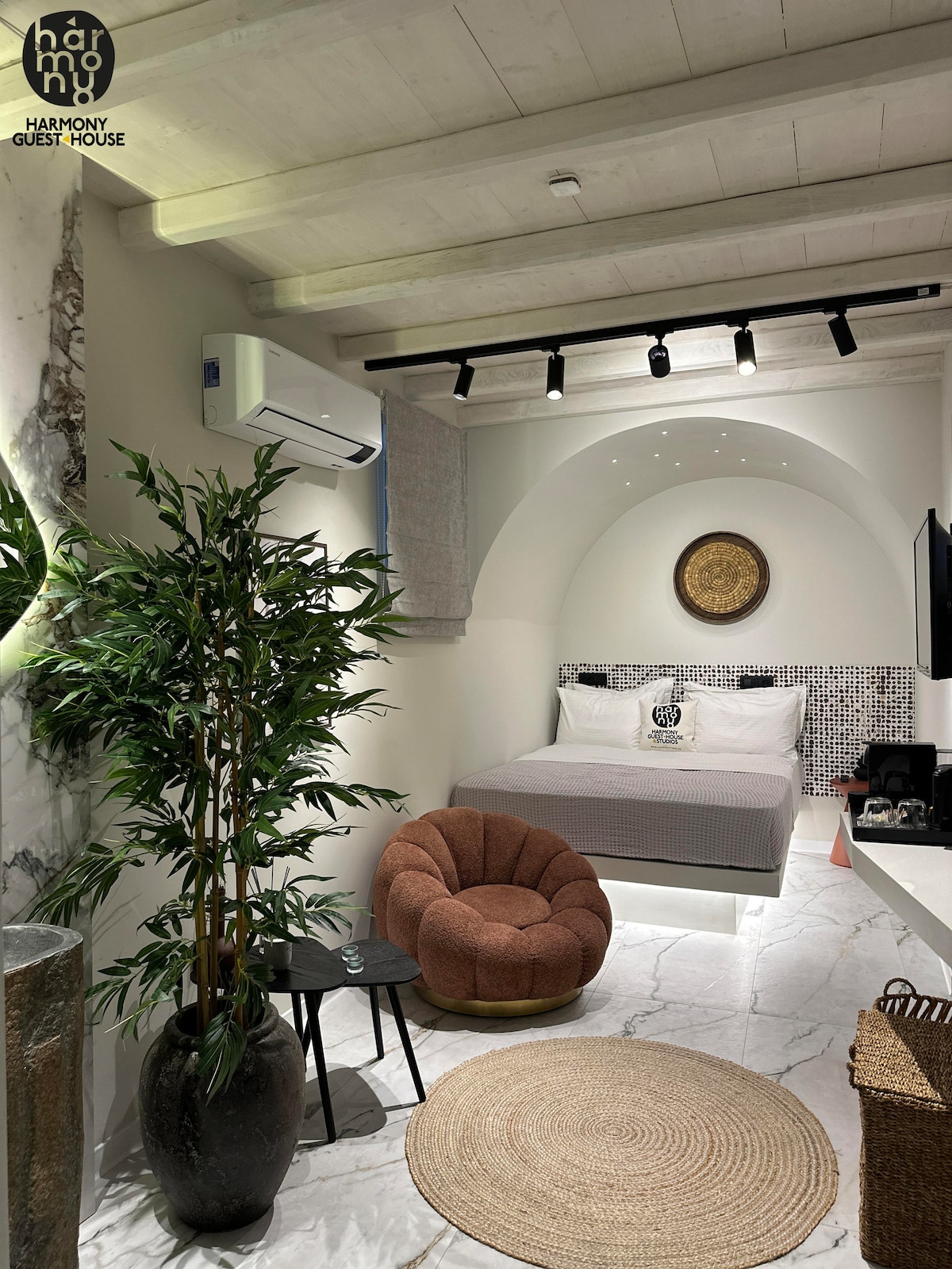 Kamar unik ini, yang dulunya berfungsi sebagai kandang, telah diubah menjadi tempat menginap yang memesona bagi tamu yang mencari kedamaian dan relaksasi. Meskipun terletak di lantai dasar asrama, tempat ini tidak memiliki halaman atau balkon tetapi dirancang dengan perhatian dan perhatian terhadap detail, menawarkan tempat yang indah dan unik untuk menjalani impian Anda. Dekorasinya memberikan estetika modern, sementara kubah di atas tempat tidur menciptakan suasana mimpi yang unik.