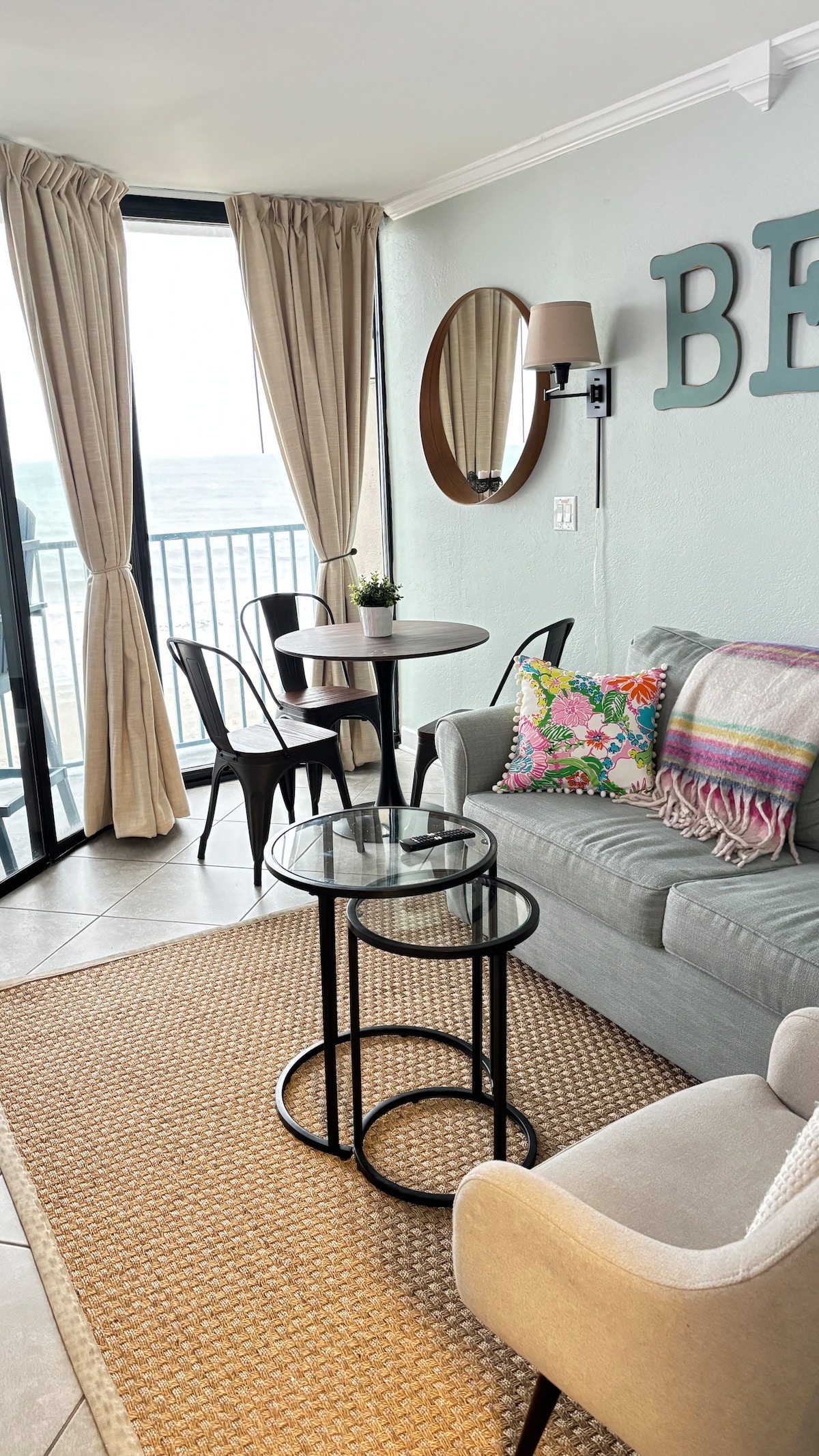 The expansive balcony and spectacular oceanfront view is what makes this stylish condo stand out! The beach is visible from nearly every room in this space & you'll have access to a pool and a cute beach cafe right outside. This is a prime location to enjoy restaurants, get in a lovely walk on the beach, or do nothing at all! When you're not out enjoying the sun or all that Myrtle Beach has to offer, you'll find the condo itself to be cozy, beautifully decorated, and super comfortable.