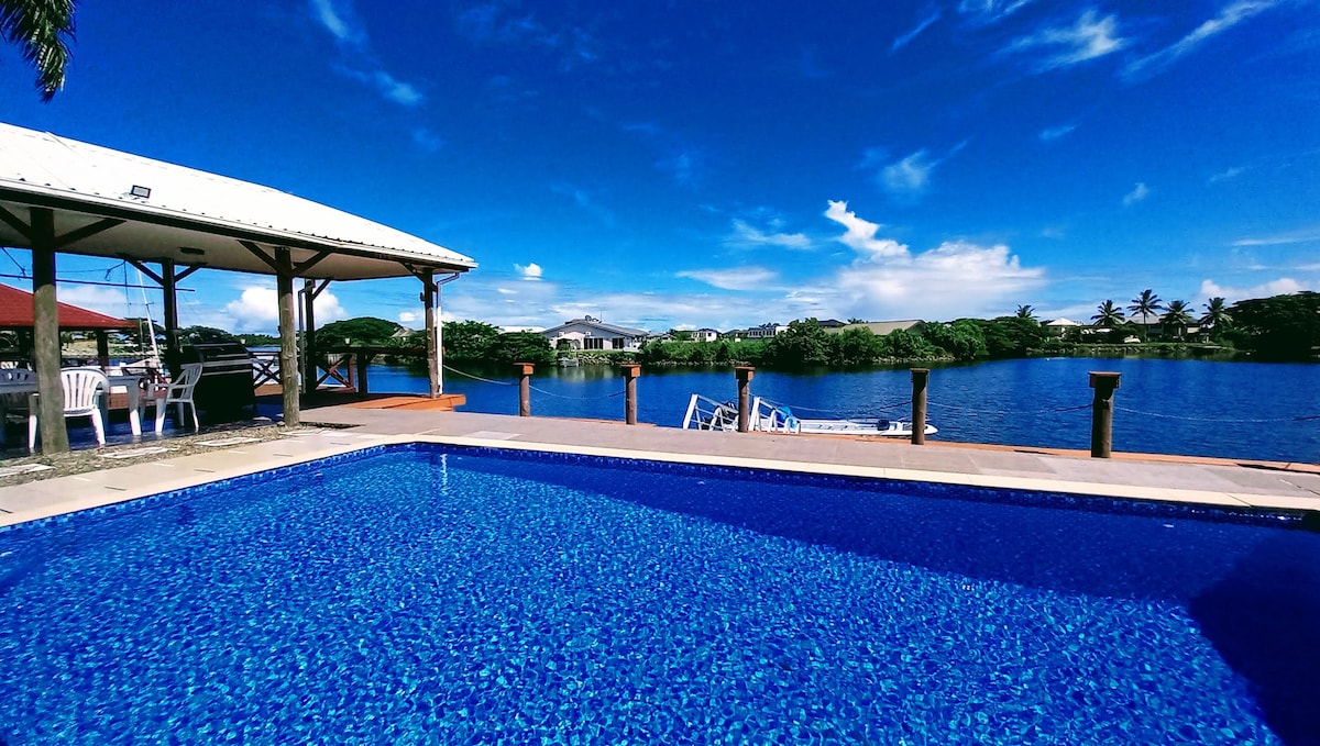 The Waterfront Sunset Apartment terletak di ruang tepi laut yang tenang di Fantasy Island, sangat dekat dengan Bandara Nadi dan Port Denarau, dan memiliki pemandangan matahari terbenam yang luar biasa dari tempat - tempat wisata yang paling indah di teluk Nadi. Apartemen yang menawan ini memiliki kolam renang yang luas dengan pemandangan tepi laut yang luar biasa, dilengkapi dengan meja makan tepi kolam renang dan pemanggang BBQ sehingga Anda bisa menikmati makanan Anda. Selain itu, ada dermaga, sehingga Anda bisa merasakan alam tropis.