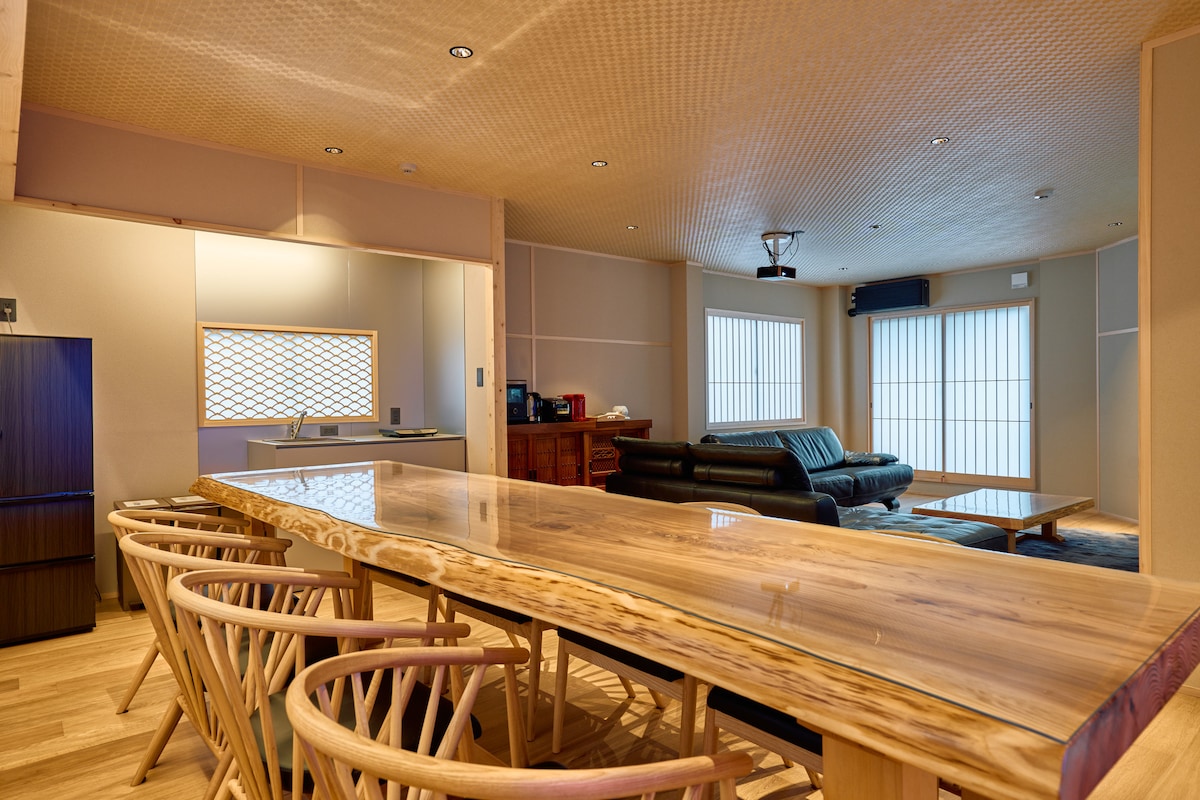 < Location > Dibuka Mei 2024.Terletak di jantung pemandangan kota bersejarah Takayama, "Maneya Ojin" adalah penginapan menawan yang terletak di 1 - chome, Dashinmachi, Kota Takayama, tempat pemandangan Jepang kuno yang bagus tetap ada.Di depan rumah kami, yang menghubungkan Toyama dan Takayama, terdapat "Rumah Keluarga Yoshishima ", properti budaya penting yang menunjukkan kekayaan properti budaya Jepang, dan daerah ini ditetapkan sebagai distrik pelestarian untuk bangunan tradisional.Anda bisa menyentuh bangunan bersejarah sambil menikmati pemandangan kota tua dan pemandangan yang indah. Terletak 2 menit berjalan kaki ke Pasar Pagi Miyagawa, dan 5 menit berjalan kaki ke Kuil Sakurayama Hachimangu, perusahaan festival musim gugur Takayama, kios festival di lingkungan ini memiliki berbagai dekorasi seperti "Toyo Meitai (Houmeitai )" (berjalan kaki 1 menit ke toko warung). Nikmati sejarah Takayama di lokasi yang sangat baik. < Building and Hida craftsman carpentry > Dibangun 145 tahun yang lalu oleh seorang tukang kayu di Hida, bangunan ini dihidupkan kembali di sini oleh tukang kayu modern.Rumah ini mempertahankan citra kuno yang baik, seperti tembikar, dinding tanah, dan gerabah.Harap bersantai di ruang santai seluas 195 m ². * Awarded 2024 Good Design Award