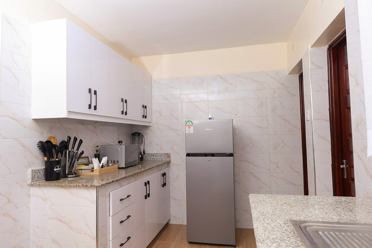 Rasakan keanggunan perkotaan di apartemen bergaya bagus 5km dari Nakuru City CBD, dan 7km dari Taman Nasional Nakuru. Apartemen ini memiliki internet berkecepatan tinggi, Smart TV, busa super elastis yang besar untuk memastikan tidur yang nyaman, dapur lengkap dengan microwave, kulkas, dan kompor gas, serta mesin cuci front - loading yang dapat menangani muatan 7kg. Nikmati pengalaman tak tertandingi yang membuat Anda merasa diremajakan.