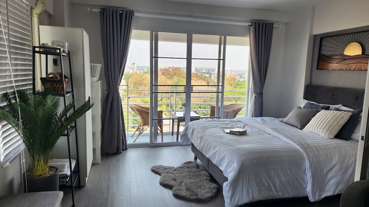 ✨ Gaya Loteng Modern @ Pusat Nimman! Menginaplah dengan gaya yang tiada duanya. Loteng satu kamar tidur berukuran 31 m² di lantai 4 ini menawarkan pemandangan pegunungan yang indah dan dekorasi kontemporer yang chic. Anda dikelilingi oleh tempat-tempat yang trendi. Bersantai di kolam renang atap khas kami dan pusat kebugaran langit sambil menikmati pemandangan matahari terbenam yang menakjubkan—ini adalah hadiah yang sempurna! Anda berada di tengah-tengah aksi: 5 menit berjalan kaki ke One Nimman/Maya; 2 menit ke bar/kafe yang chic. Parkir dalam ruangan gratis dan taman yang indah. Pesan penginapan bergaya Anda hari ini!