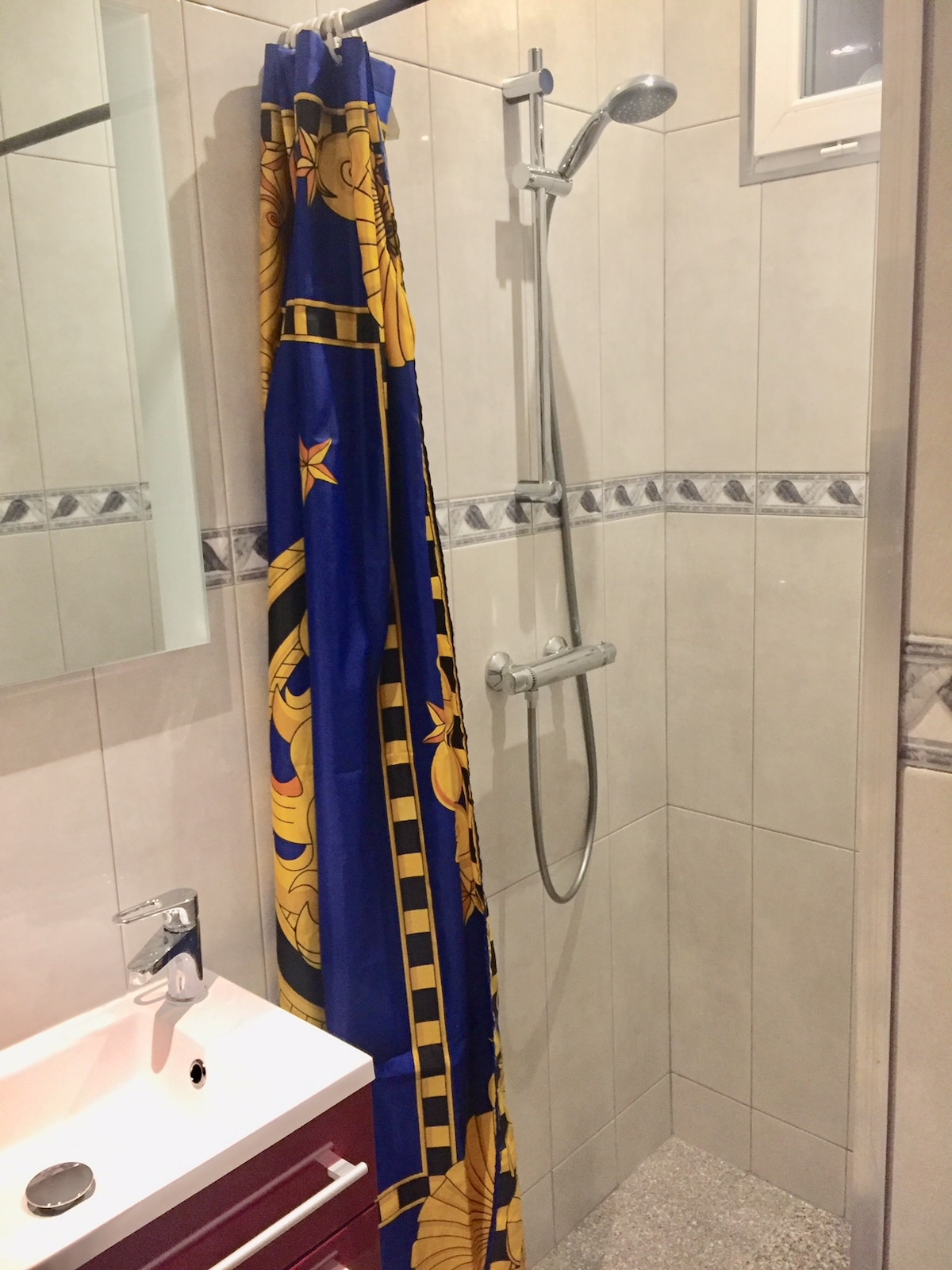 Apartemen ber - AC dan direnovasi dengan teras besar. Parkir gratis 3 Kamar Tidur "double bed" dengan perlengkapan tempat tidur berkualitas 1 Tempat Tidur Payung Bayi. 1 tempat tidur lipat lipat untuk 1 orang. 1 kamar mandi dengan pancuran. Berperabot lengkap, modern,peralatan, pemutaran film, kanal+, mesin kopi Dolcé Gusto atau Nespresso, WiFi. Halte bus 100 m. Ditawarkan: Kopi,Teh,Cokelat,Infus dengan Selai, Madu, dan Nutella. Tenang, pesta dilarang keras. Kemungkinan merokok di teras.